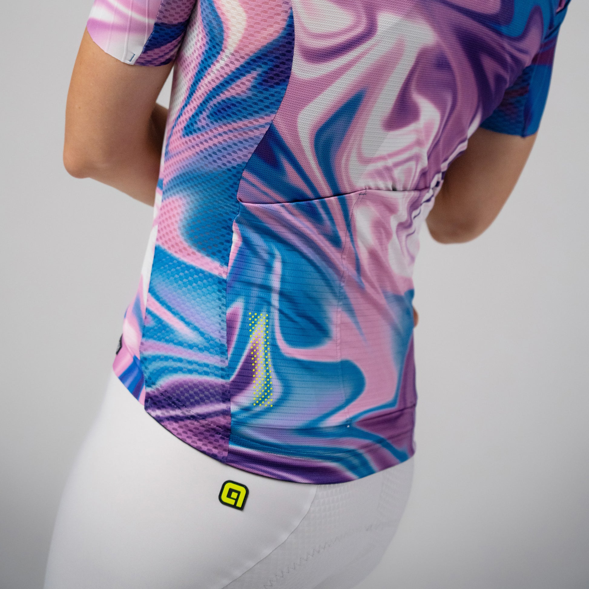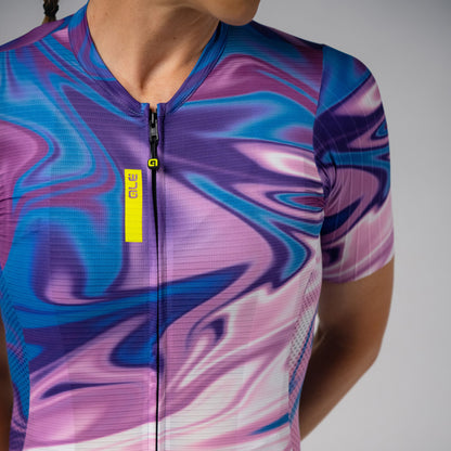 Relying on Alé’s Body Mapping technology, each panel of this jersey has been strategically placed to provide serious comfort. Underscoring the second-skin feel of the jersey, it features Rap Dry Carbon with interwoven carbon yarns alongside the ultra-lightweight Micro Aero fabric for constant air circulation, resulting in a piece of first-class comfort weighing just 110grams. Our lightweight S-Stability System on the bottom front of the jersey guarantees an impeccable fit over your shorts. We engineered it with an innovative performance-focused construction, positioning our groundbreaking JET STRIPE fabric on the sleeves to minimize drag with a super low volume, two-way stretch and 3D channel-effect that boosts aerodynamics.